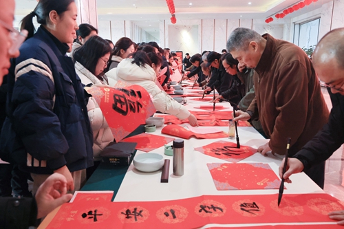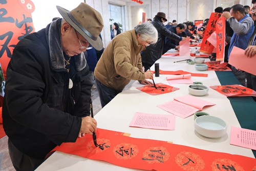 隨著蛇年春節腳步臨近,活動期間還舉辦了“文化惠民”活動,江蘇省當代藝術創作研究會的文化學者揮毫潑墨,寫對聯、送福字,為大家送來了新年的祝福。